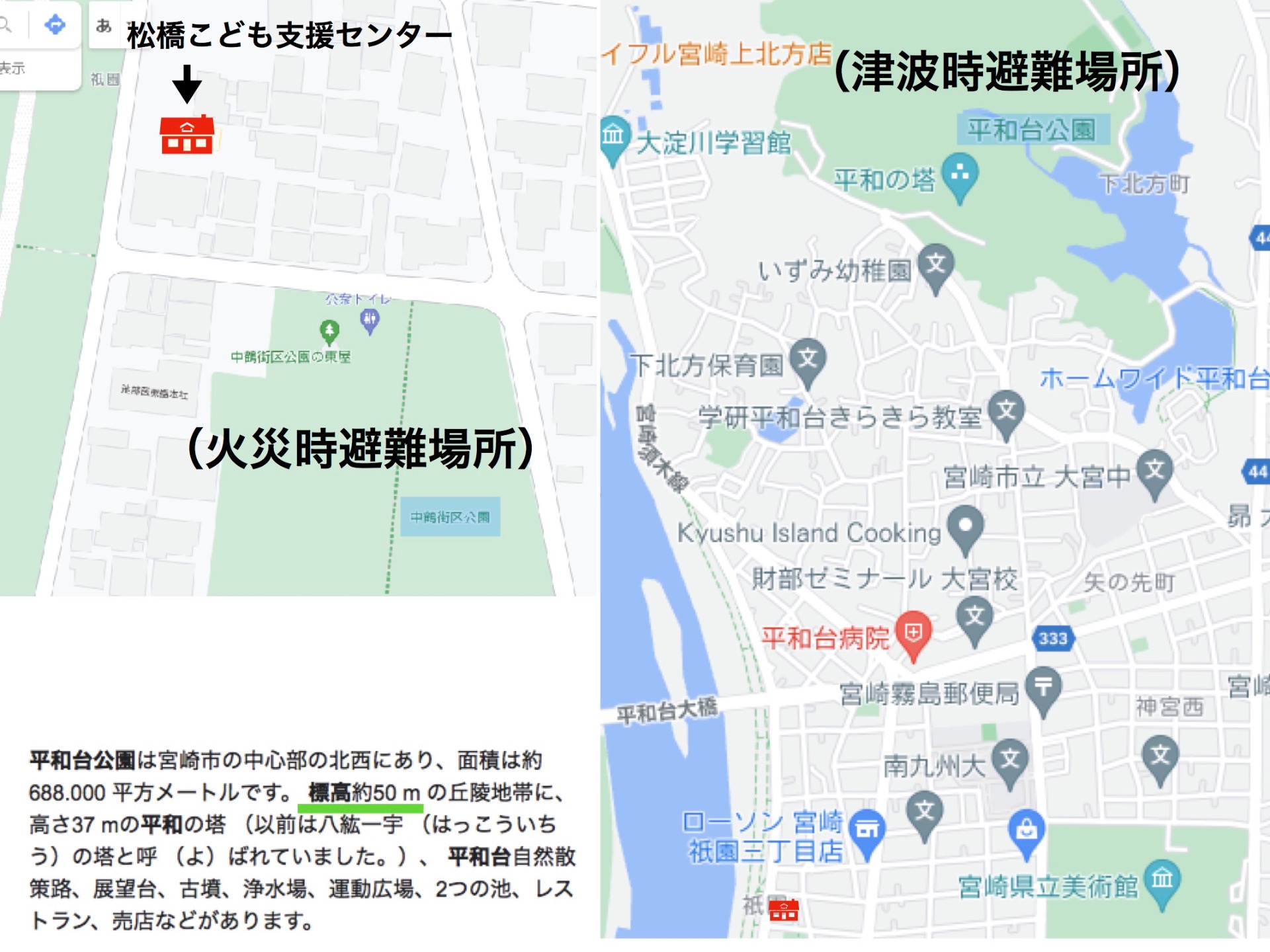 津波の心配がある場合は平和台公園駐車場へ避難