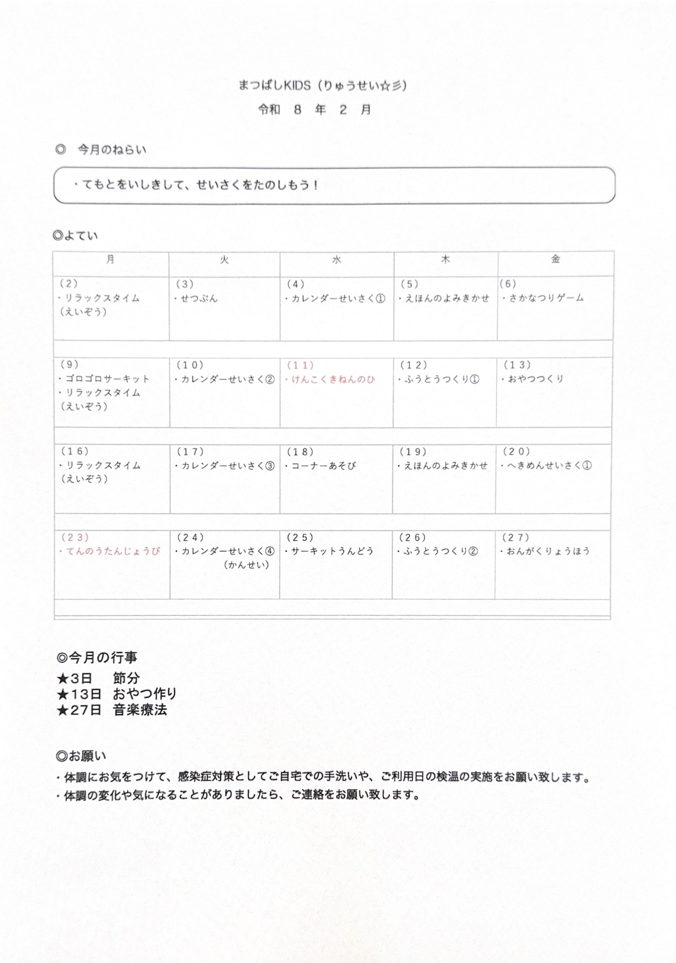 まつばしKIDS(りゅうせい)では、ひとりひとりが伸び伸びと「自分」を発揮し、様々な遊びや課題に取り組んでます。その中で、社会性や基本的な生活動作を身につけ、友達と助け合いながら成長する場となっています。