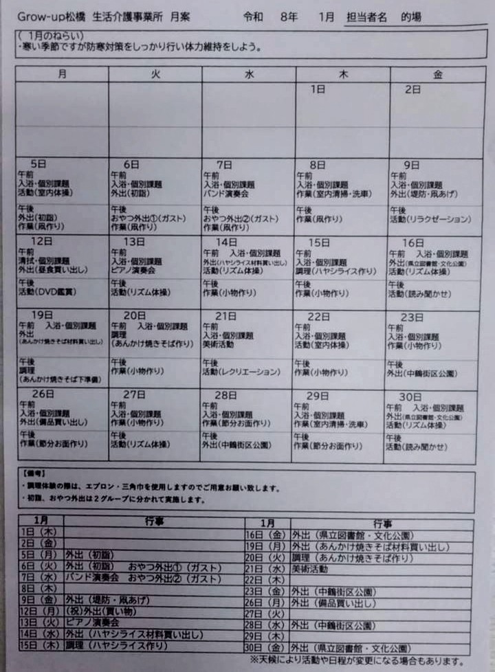 ・活動予定表